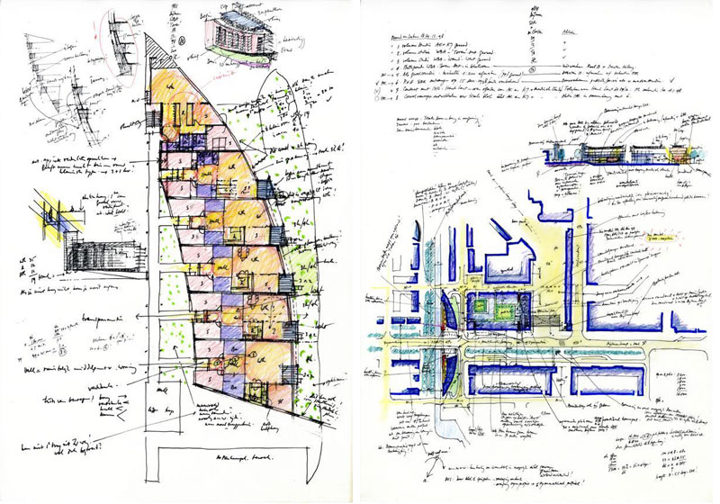 Deze woongebouwen zijn niet alleen vitale elementen in hun stedebouwkundige compositie. Zij vormen ook een graduele overgang van de meer formele stedebouw bij het metro/treinstation naar de woonbuurten. Daarnaast poogt het een uitdrukking te zijn van een betere woonkwaliteit voor de Bijlmer. ■