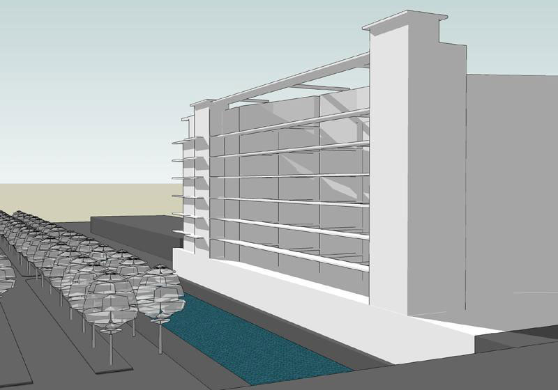 Om de straat tussen woongebouw en nieuw clustergebouw vorm te geven is het woongebouw 5 tot 10 meter opgetild van respectievelijk de verhoogde Bijlmerdreef en het nieuwe straatniveau. Dunne dragende gevelkolommen vormen een overgang tussen de straat en de onderbouw en leveren een fraai schaduwspel als de zon schijnt. De straat en de winkels in de onderbouw lopen onder de verhoogde Bijlmerdreef naar het blok aan de noordzijde.
